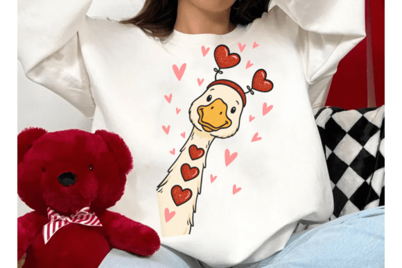 Another great find is this retro Valentine’s goose PNG. This funny, high-quality design is well-suited for sublimation and printing needs. It looks especially great on pillows and apparel. The post includes 2-3 relevant images of this quirky goose.