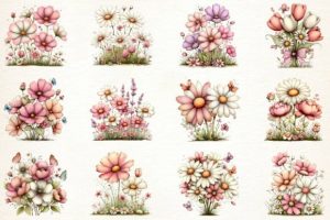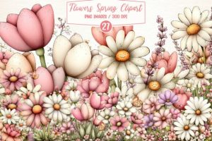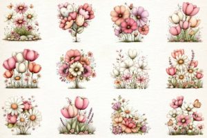 Whimsical Spring Flower Clipart is a delicate floral illustration set created in a soft, romantic watercolor style with gentle pastel tones and hand-drawn details. This elegant clipart is perfect for adding a light and whimsical touch to both digital and print designs.